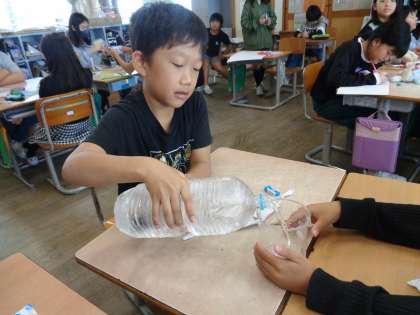 空気中の水蒸気を冷やすと目に見える水に戻ることを確かめることができました。