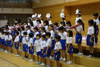 今日は学習発表会の予行練習がありました。1年生は「くじらぐも」の群読劇を発表しました。たくさんの人の前での発表で緊張している様子の1年生でしたが、大きな声で堂々と発表することができました。土曜日の学習発表会に向けて、明日から最後の仕上げをしていきます。