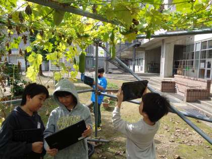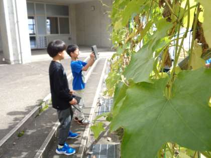 ヘチマと、自分が春に選んだ生き物の観察をしました。