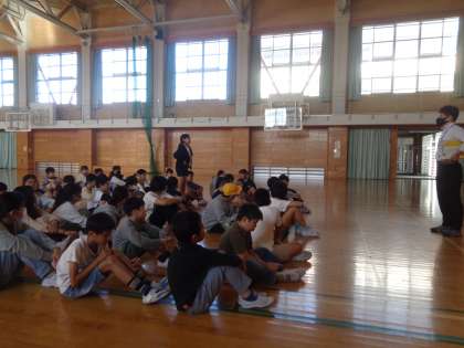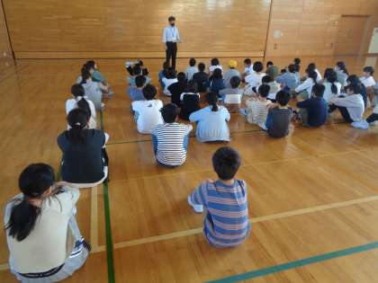 今朝の学年集会の様子です。学習発表会のことを振り返り、次の目標を共有しました。目的をもって、5年生の残り半分の期間も活動に取り組んでいきましょう。
