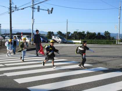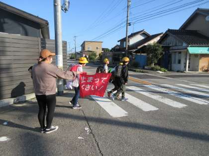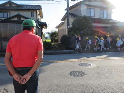 PTAの方が、子供達の安全のため、交差点や信号に立ってくださっています。