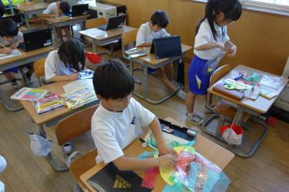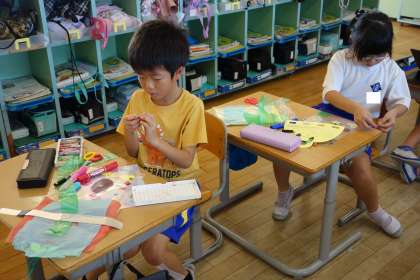 「ひらひら ゆれて」の作品が全員完成しました。子供たちが工夫を凝らして作った作品が完成しました。