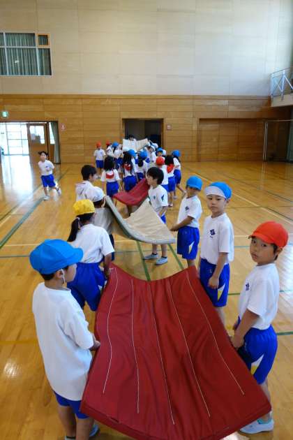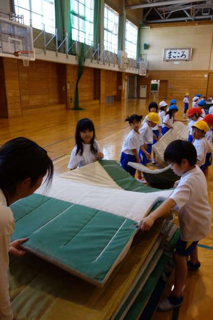 マットを片付ける様子です。準備・片付けも、繰り返し行っていくと上手にできるようになってきました。さすが、1年生!