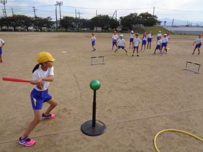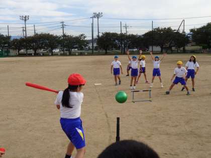 スポーツ係がTボールの試合を企画しました。白熱したゲームになりました。