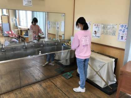 自分たちにできることを考え、掃除用具についた埃も綺麗に落としていました。