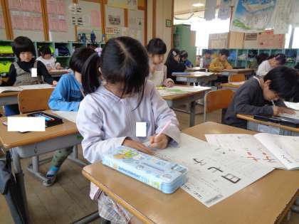 おれ・まがり・そりに気をつけて、漢字を書く学習を行いました。スマイルネクストドリルも使って、何度も確認しています。