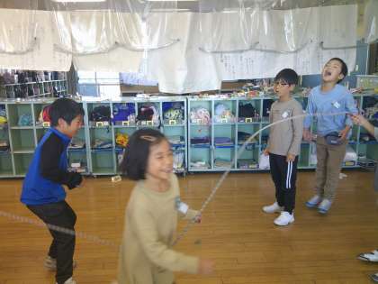 休み時間には声をかけ合って、明日の大会に向けて、8の字跳びの練習に取り組んでいました。