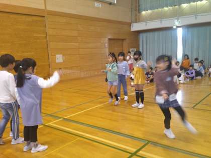 2年生は、1、2組混合で4チームが出場しました。どのチームも声をかけあい、記録の更新を目指して集中して取り組みました。