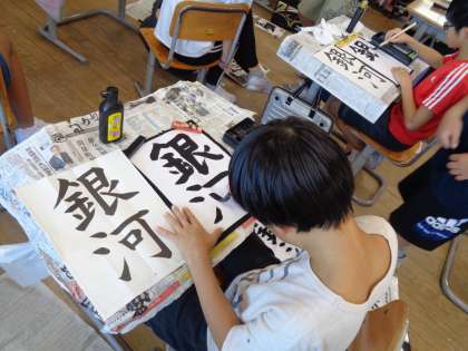 「銀河」という字を練習しました。手本をよく見て、丁寧に取り組みました。