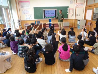外部の講師の方をお招きし、前半の1時間はSDGsやチューリップ等についてお話を聴きました。興味をもったことについてどんどん質問したり発言したりする活発な子供の姿が見られました。