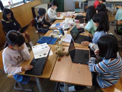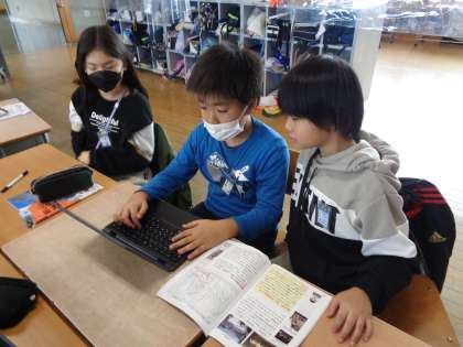 3人の中から1人を選び、同じ人を選んだ友達同士で協力して調べ学習を進めました。調べて分かったことはスライドにまとめます。