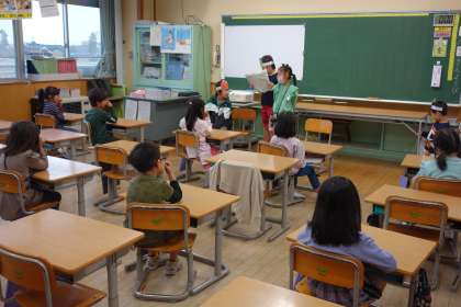 2年生が国語科で学習した「お手紙」の音読発表をしてくれました。