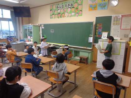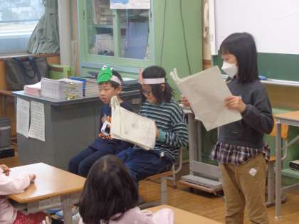 今日は、音読発表会を行いました。1年1組と2年1組の子供たちに発表会を行い、今までの練習の成果を発揮しました。子供たちは、緊張したけれど、「気持ちを込めて音読することができた」と、とても満足そうでした。