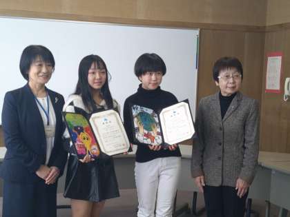 公益社団法人富山法人会より職員の方々が来校され、第14回税に関する絵はがきコンクールの授賞式が行われました。6年生2人の児童が表彰されました。受賞した児童は、「自分が学習した税に関する大切なことが、多くの人に伝わるように作品を描きました」など、堂々と自分の思いを述べました。この表彰式の様子は、新聞にも掲載される予定です。