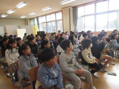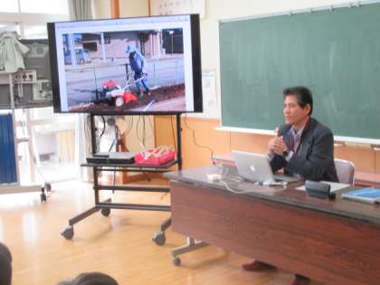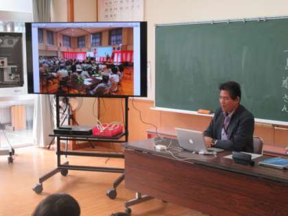 今日の総合的な学習の時間では、ふるさとづくり推進協議会会長さんをゲストティーチャーとしてお呼びして、地区のことをたくさん教えていただきました。