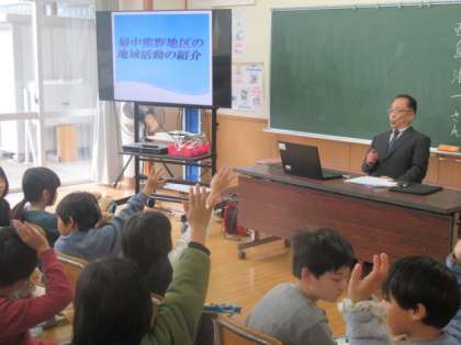 今日の総合的な学習の時間では、地域からゲストティーチャーをお呼びし、地域の活動を教えていただきました。
