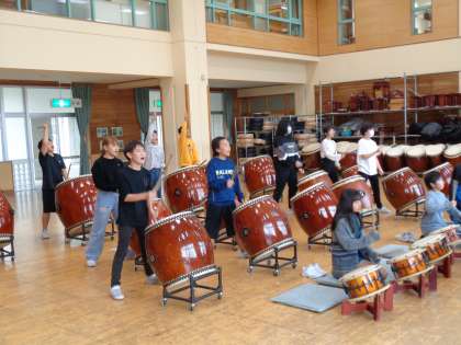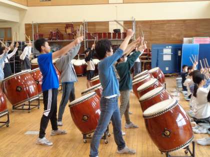 全校による「太鼓げんキッズ」のあと、先生をお招きして、6年生の太鼓指導をしていただきました。「卒業に向けて、がんばりましょう」と話され、子供たちの意欲がより高まりました。