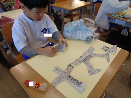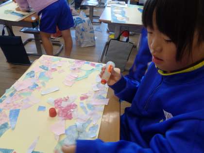 図画工作科の学習では、いろいろな紙を破いて生まれる形を楽しみました。