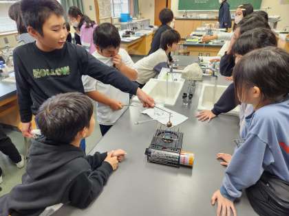 金属の球を熱したり冷やしたりして、体積がどのように変化するかを確かめました。