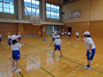今日のラッキーシュートゲームでは、ただのパス練習ではなく、ボールを取る役をつくることで、より効果的な練習を行うことができました。試合も相手にボールを取られないことを意識して行うことができました。