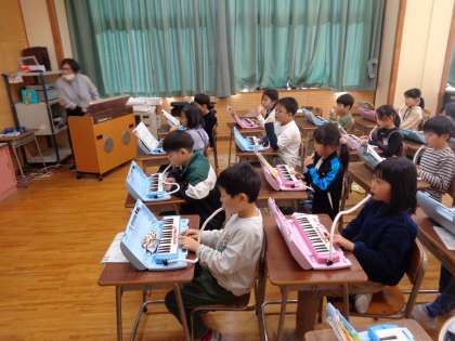 今日は、冬の曲を歌ったり、トーンチャイムや鍵盤ハーモニカで演奏したりしました。手元を見なくても演奏できるようになりたいと、何度も練習していました。