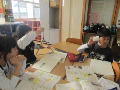 今日の理科の時間に、音はどのように伝わるのかを確かめる実験をしました。