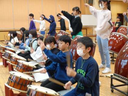チーム別で練習を進めています。4年生にしっかりと「大地」「大祭」を引き継ぐために、自分たちの演奏を磨いています。