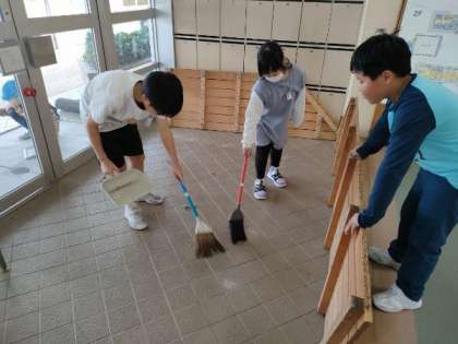今日は、第3期たてわり掃除の最終日でした。子供たちは、今期の担当場所を最後まで美しくしようとがんばっていました。朝、雨のために、泥だらけだった玄関は、ピカピカです。