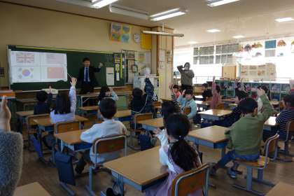 外国語担当の先生との学習を行いました。先生の自己紹介を聞いたり、ゲームを行ったりして、楽しく学習しました。