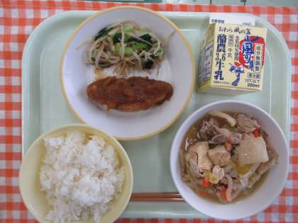 今日の献立は、ごはん、揚げ魚のみぞれだれ、昆布和え、はくさいなべ、牛乳です。