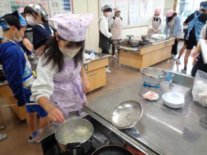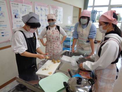 「ベーコンポテト」を作りました。班の友達と協力して、手際よく調理を進めました。
