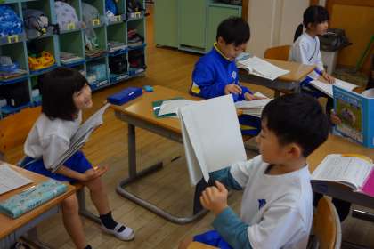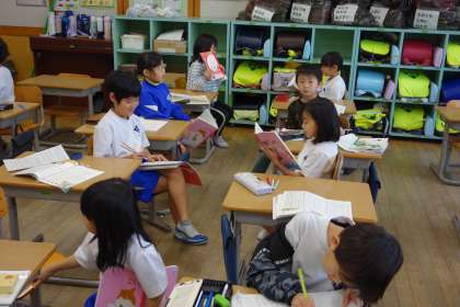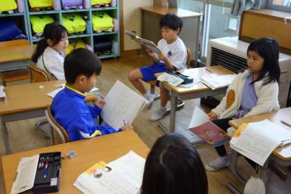 友達に聞いたことをもとに、文章を書きました。書いた文章を、ペアの友達に聞いてもらいました。うまく書けたかな??