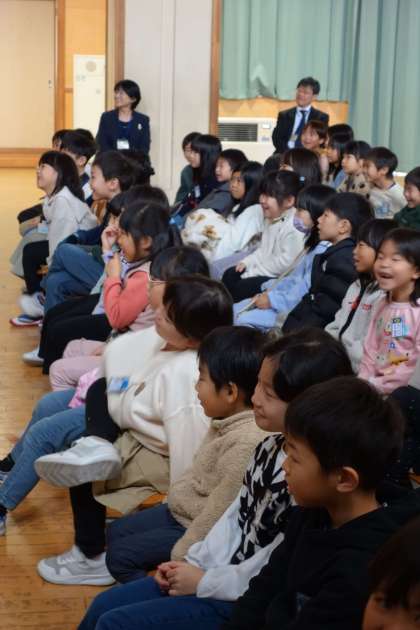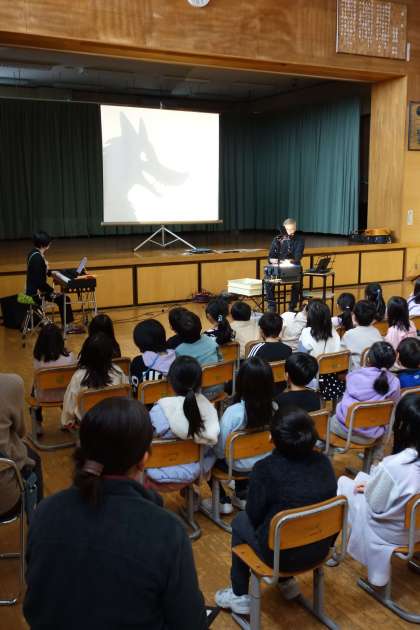 影絵の鑑賞を行いました。アレンジされた昔話に夢中の子供たちでした。