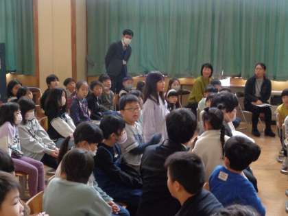 今日は、影絵を鑑賞しました。子供たちは、楽しみながら物語に集中して見ていました。実際に影絵を体験し、難しさやおもしろさを体感していました。影絵に合わせるピアノの音にも興味をもっていました。