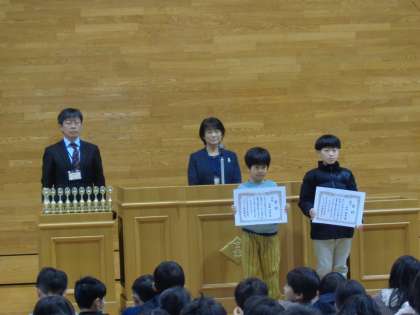 今日は、2学期の終業式を行いました。もう少しで3年生になることも頭に入れ、正しい姿勢で最後まで先生の話を聴くことができました。1学期からの成長を感じる終業式でした。