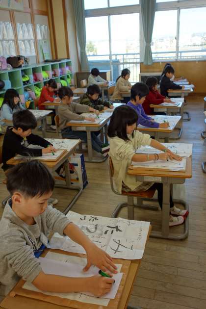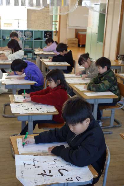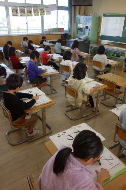 書初大会の様子です。どの子も集中して、取り組むことができました。