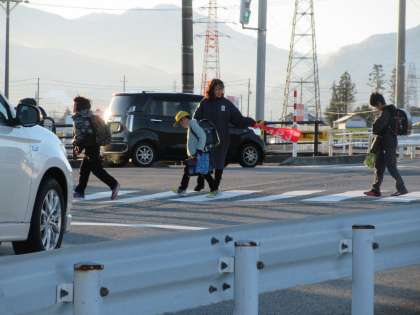 でも、子供は風の子、元気な子。みんな笑顔で元気に登校しています。