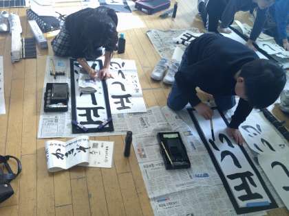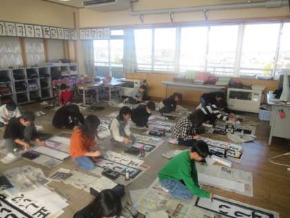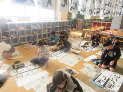 3学期が始まり、今日は始業式、書き初め大会がありました。