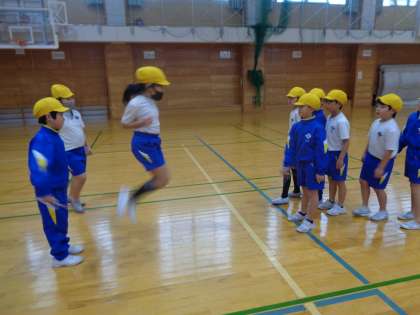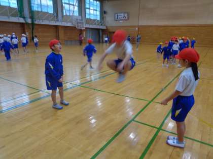 今日は、様々な「跳ぶ」活動に取り組みました。8の字跳びでは、間を開けずに跳ぶことに挑戦し、仲間とアドバイスし合いながら取り組むことができました。ゴム跳びでも、腰の高さのゴムを簡単に飛び越えることができました。