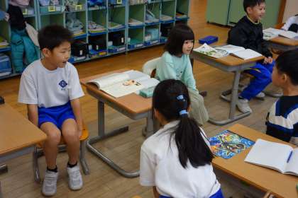 国語科の学習の様子です。「ゆめ」に関する詩を読んだり、書いたりしました。自分がみた「ゆめ」を友達に伝えたり、登場人物の「ゆめ」について想像を膨らませたりしました。
