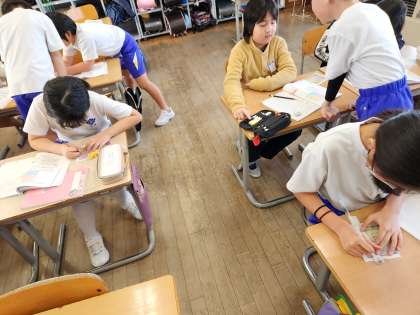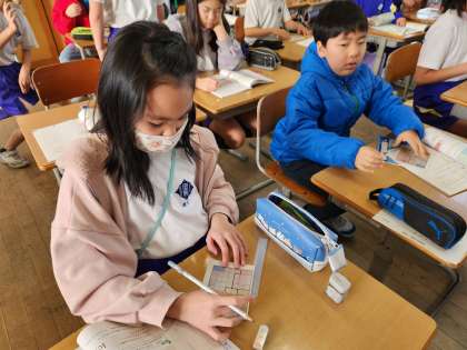 陣取りゲームで獲得した陣地の面積の比べ方を考え、発表しました。