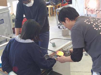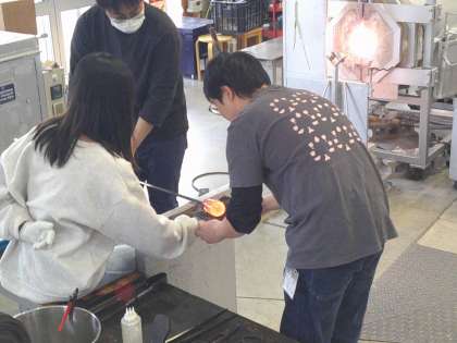 富山ガラス工房で、ガラスペーパーウェイト製作を体験しました。ご指導を受けながら、デザインや色を決め、自分だけの宝物を作ることができました。