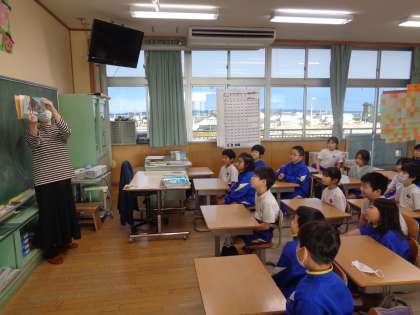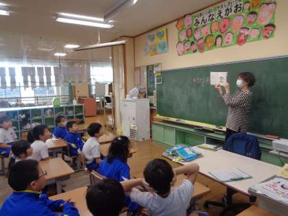 今日の読み聞かせは、「きょだいなきょだいな」と「なにをたべたかわかる」というお話を読んでいただきました。いつも使っている物が突然巨大になって表れることに驚きを感じながら聞いていました。今まで以上に、本に興味をもつことができています。