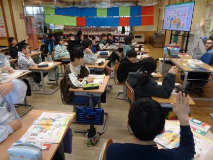 今年初のALTの先生との授業でした。久しぶりの外国語にウキウキした様子でした。