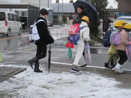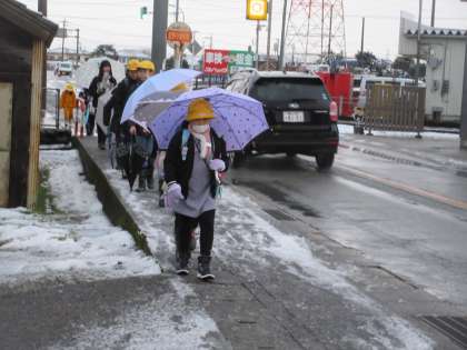 寒さで、子供達はうつむき加減ですが、挨拶はしっかりとしています。