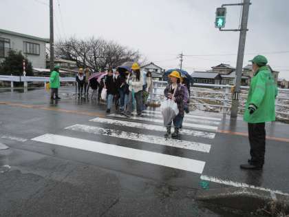 こんな寒い日にも、交通指導の方々が、交差点に立ってくださっています。