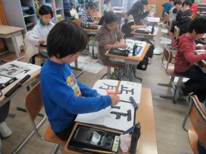 今日の書写の学習では、毛筆で「正月」の清書を行いました。