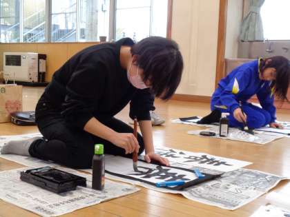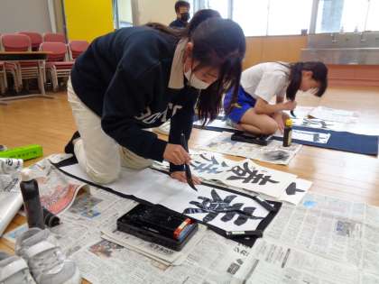 富山県小学生書初大会に向けて、代表児童が練習会を行いました。大きく伸び伸びと書くことを意識して練習しました。
