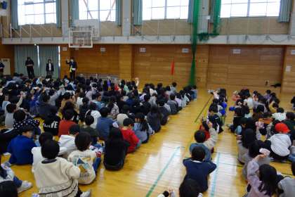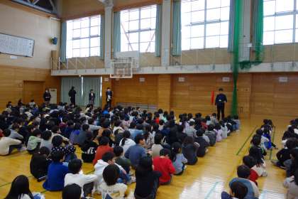 今日は、避難訓練を行いました。火災を想定し、体育館へ避難しました。