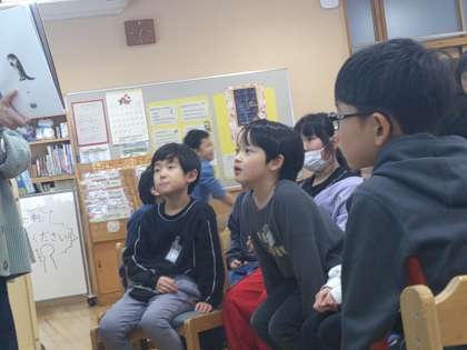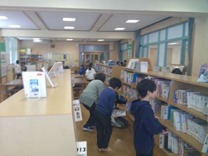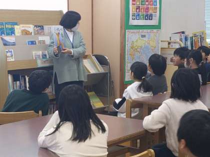 司書の先生に「きつね」が出てくる本の読み聞かせや、本の紹介をして頂きました。その後、早速、その本を借りた子供もいました。
